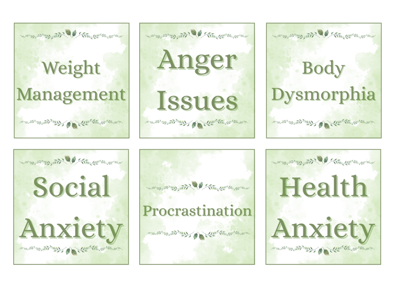 THIS IS ONLY A SELECTION OF CONDITIONS SOLUTION FOCUSED HYPNOTHERAPY CAN HELP WITH.
